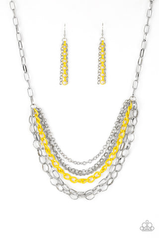 Color Me NEON - Yellow - Acrylic and Silver Frame Chain Tassel Paparazzi Long Necklace