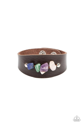 Colorful Canyoneer - Purple - Amethyst Pebble Brown Leather Paparazzi Snap Wrap Bracelet
