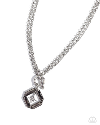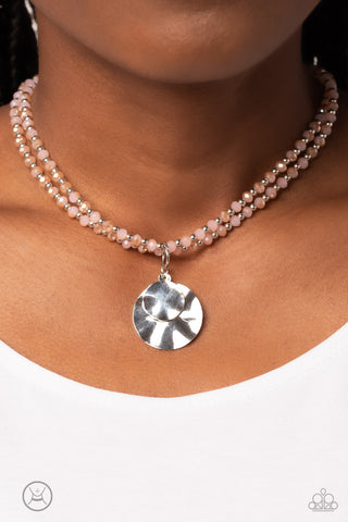 Compacted Cosmos - Pink - Faceted Bead Hammered Silver Disc Paparazzi Choker Necklace