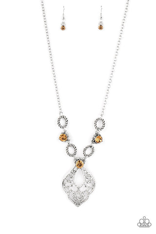Contemplative Chic - Brown - Acrylic Bead Hammered Gold Disc Paparazzi Short Necklace