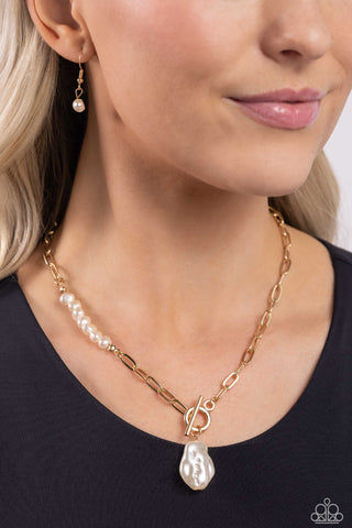 Courting Cosmopolitan - White - Oversized Baroque Pearl Paparazzi Short Toggle Necklace