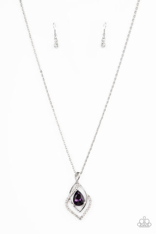 Dauntless Demure - Purple - Teardrop Gem Silver Pendant Paparazzi Short Necklace