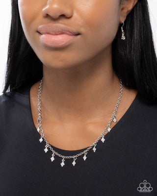 Decadent Dedication - White - Rhinestone Crisscross Y-Shaped Paparazzi Short Necklace