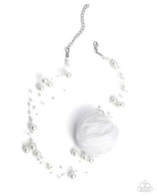 Delicate Dame - White - Bead and Iridescent Rhinestone Tiered Paparazzi Short Necklace
