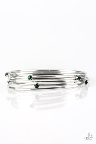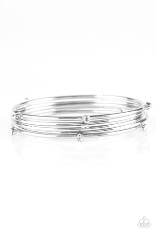 Delicate Dazzle - Black - White Rhinestone Gunmetal Paparazzi Flex Cuff Bracelet