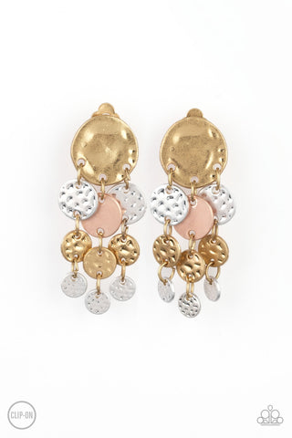 DIY Dazzle - Gold - Rhinestone and White Opalescent Bead Paparazzi Post Earrings