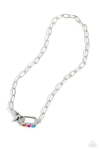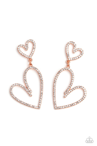 Doting Duo - Copper - White Rhinestone Asymmetrical Heart Paparazzi Post Earrings