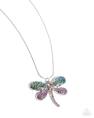 Dragonfly Daydream - Pink - Cat's Eye Wing Silver Filigree Paparazzi Long Necklace