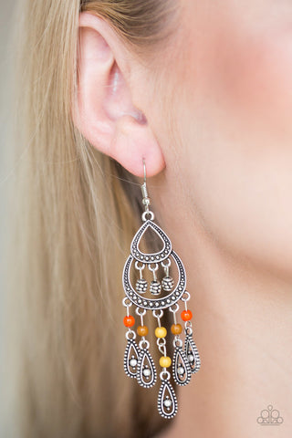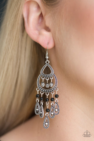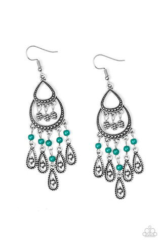 Eastern Escapade - Blue - Beaded Center Silver Frame Paparazzi Stretchy Bracelet