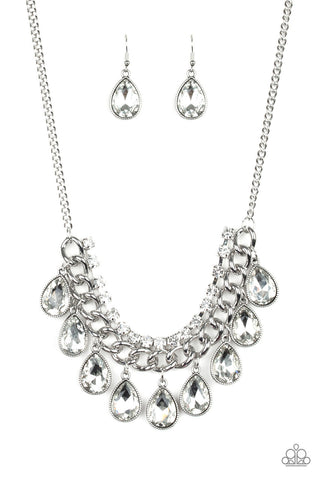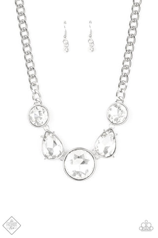 Alluring - 2023 Zi Collection - White Rhinestone Gold Paparazzi Statement Short Necklace