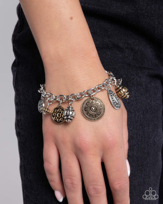 Embellished Empire - Silver - White, Smoky, and Hematite Gem Paparazzi Cuff Bracelet