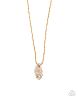 End Zone Elegance - Gold - White Rhinestone Encrusted Football Paparazzi Short Necklace