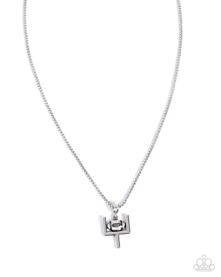 End Zone Elegance - White - Rhinestone Encrusted Football Paparazzi Short Necklace