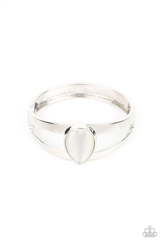 Enhanced Enchantment - White - Teardrop Cat's Eye Stone Paparazzi Hinge Bracelet