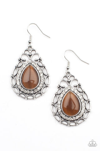 Endlessly Enchanting - Brown - Teardrop Cat's Eye Stone Paparazzi Fishhook Earrings
