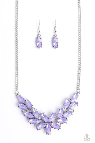 Ethereal Efflorescence - Purple - Opalescent Gem Flower Paparazzi Short Necklace