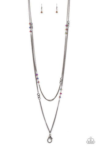 Ethereal Expectations - Multi - Oil Spill Bead Gunmetal Paparazzi Lanyard Necklace