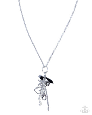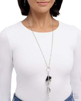 Exclusive Emblem - Black - White Rhinestone Medallion Paparazzi Short Necklace