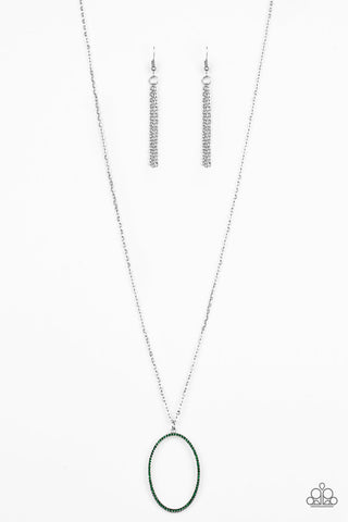 A Diamond a Day - Green - Cat's Eye Stone White Rhinestone Paparazzi Long Necklace