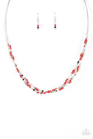 Explore Every Angle - Red - Seed Bead Multistrand Paparazzi Short Tiered Necklace