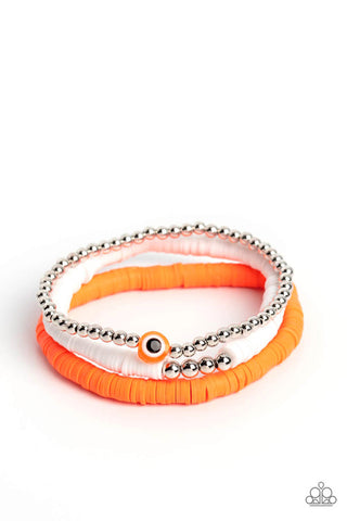 EYE Have a Dream - Orange - Rubber Disc Silver Bead Paparazzi Stretchy Bracelet
