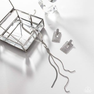 Feuding Fringe - Black - White Gem Gunmetal Chain Paparazzi Ear Crawler Earrings
