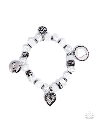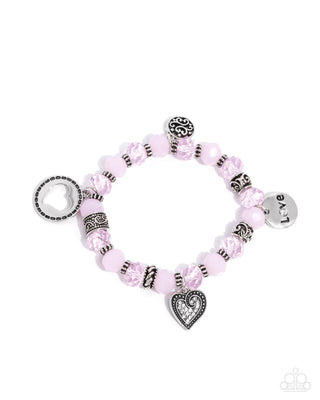 Filigree Finesse - Pink - Heart Charm "LOVE" Beaded Paparazzi Stretchy Bracelet