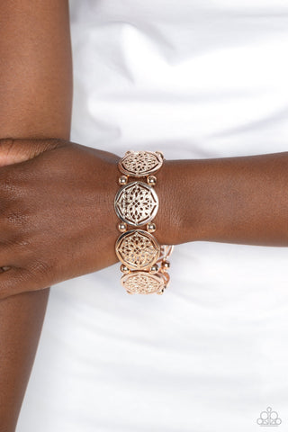 Filigree Fanfare - Multi - Floral Silver and Rose Gold Disc Paparazzi Stretchy Bracelet