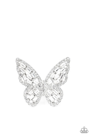 Flawless Flutter - Purple - Teardrop Rhinestone Silver Butterfly Paparazzi Dainty Ring