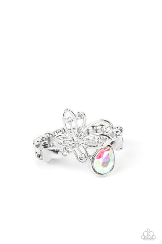 Flauntable Flutter - Multi - Oil Spill Rhinestone and Gunmetal Butterfly Paparazzi Ring