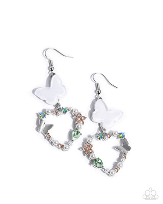 Flirting Flourish - Pink - and Multicolored Rhinestone Heart Paparazzi Fishhook Earrings