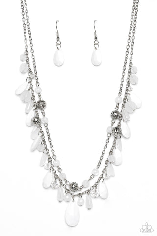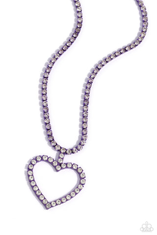 Flirting Fancy - Pink - White Rhinestone Metallic Heart Paparazzi Short Necklace