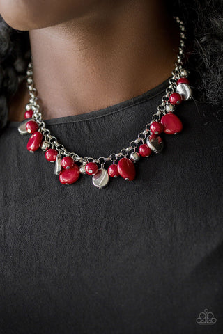 Flirting Ferris Wheel - Red - Blue, and Pink Rhinestone Heart Paparazzi Short Necklace