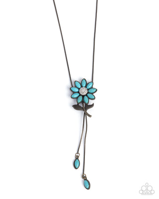 Floral Find - Green - and Blue Iridescent Rhinestone Flower Paparazzi Stretchy Bracelet
