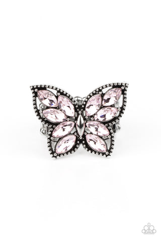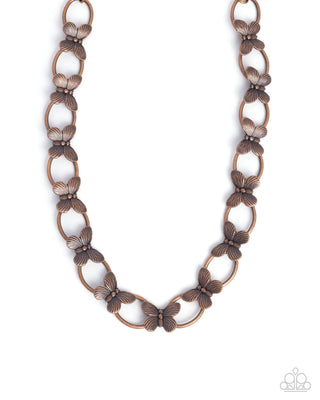 Fluttering Flashback - Copper - Opalescent White Rhinestone Butterfly Paparazzi Ring