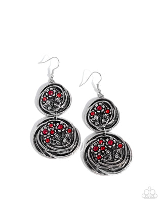 Garden Regalia - Red - Enamel Disc Silver Flower Paparazzi Lobster Claw Bracelet