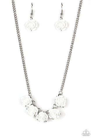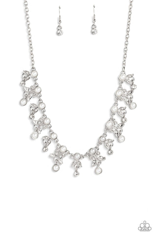 Garden Princess - White - and Pearl Rhinestone Leafy Filigree Paparazzi Short Necklace