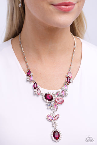 Generous Gallery - Pink - and Iridescent Gem Cluster Paparazzi Short Statement Necklace
