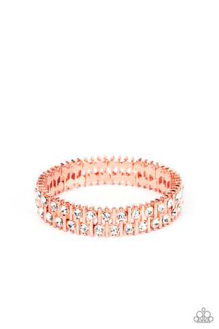 Generational Glimmer - Copper - White Rhinestone Blingy Paparazzi Stretchy Bracelet