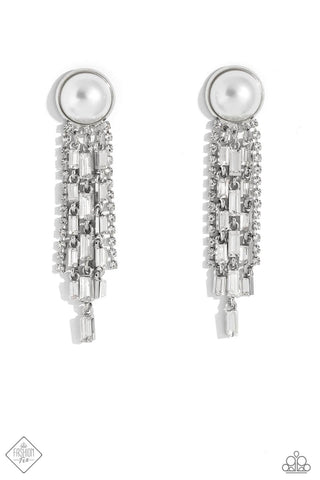 Genial Glam - White Earrings - Fiercely 5th Avenue April 2025 - Paparazzi Accessories