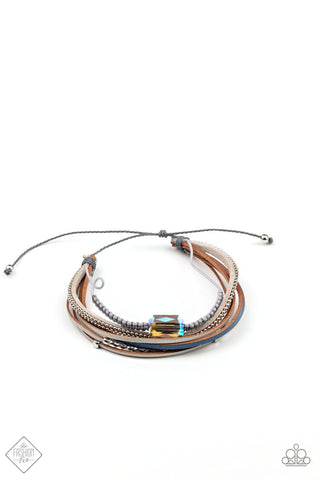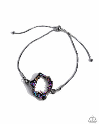 Geode Greeting - Multi - Oil Spill Druzy Crystal Gunmetal Paparazzi Lariat Bracelet
