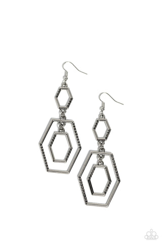 Geometric Glitz - Multi - Iridescent and White Rhinestone Paparazzi Post Earrings