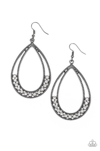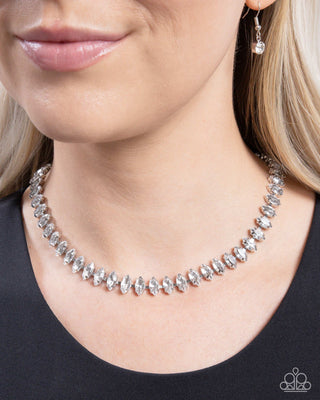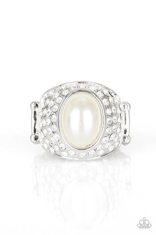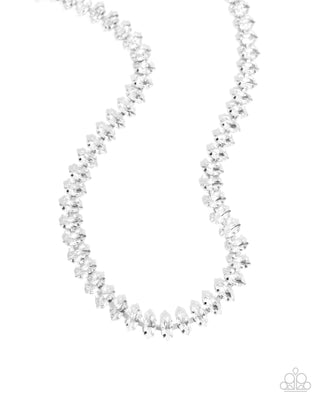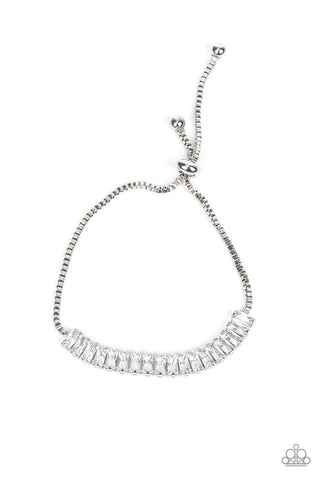 Glittery Glow Up - White Rhinestone-Embellished Silver Paparazzi Ear Cuff Earrings