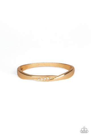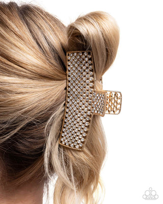 GLITZY by Association - Gold - White Rhinestone Paparazzi Blockbuster Hoop Earrings