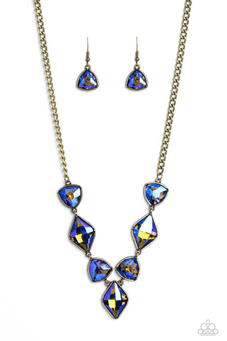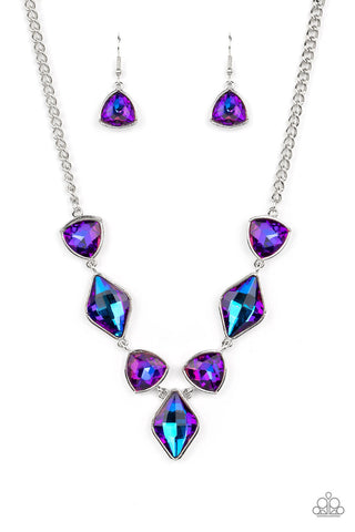 Glittering Geometrics - Brass - Purple Iridescent UV Gem Paparazzi Short Necklace