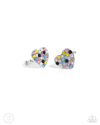 As Far As It GLOWS - White - Rhinestone Encrusted Heart Paparazzi Ear Cuff Earrings