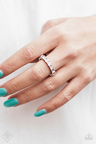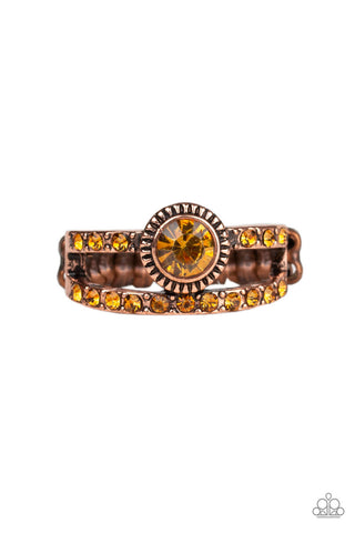 Glowing Gardenista - Rose Gold - White Iridescent Rhinestone Leafy Paparazzi Ring