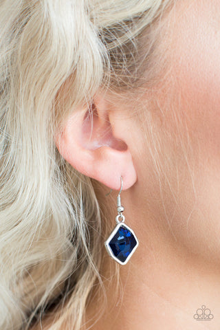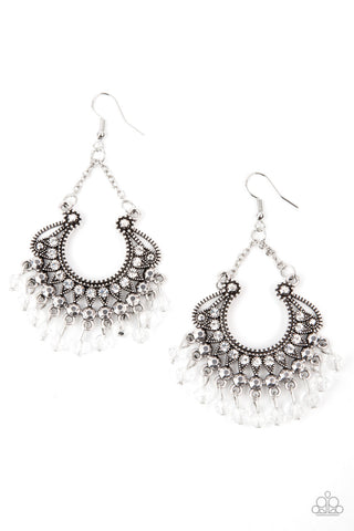 GLOW Time - White - Oversized Princess Cut Gem Paparazzi Post Earrings - Blockbuster