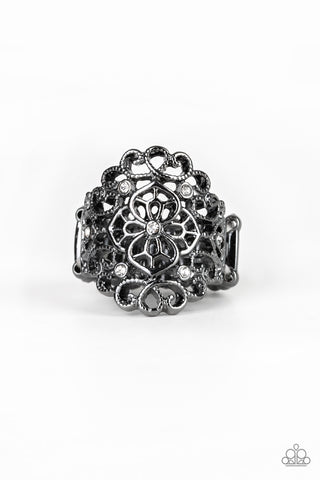 Grecian Glamour - Black - Faceted Acrylic Bead Gold Accent Paparazzi Stretchy Bracelet
