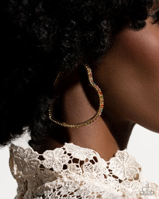 Halftime Hearts - Multi - Colorful Rhinestone Gold Heart Paparazzi Hoop Earrings